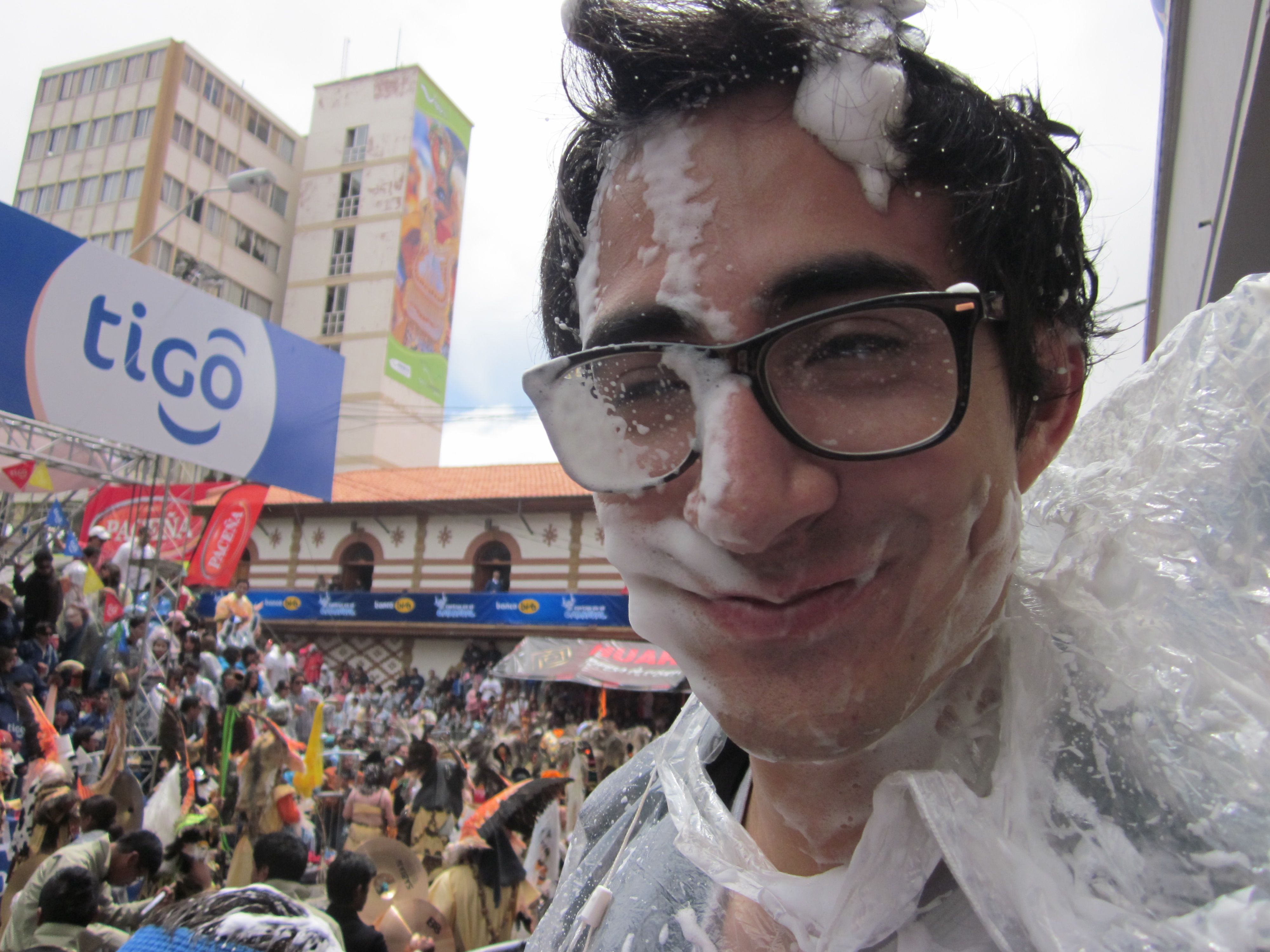 So in Orouro, much like Sucre, Carnival is the perfect excuse to ambush random strangers, except that there they have evolved past simple water balloons , to super soakers and especially sort of shaving cream like foam spray. This mischievousness has escalated to such a degree that one of the first things I noticed was that everywhere they were selling those cheap plastic ponchos, but I quickly realized it was not for protection from the rain, but the inundation of Carnival ‘esponja’.