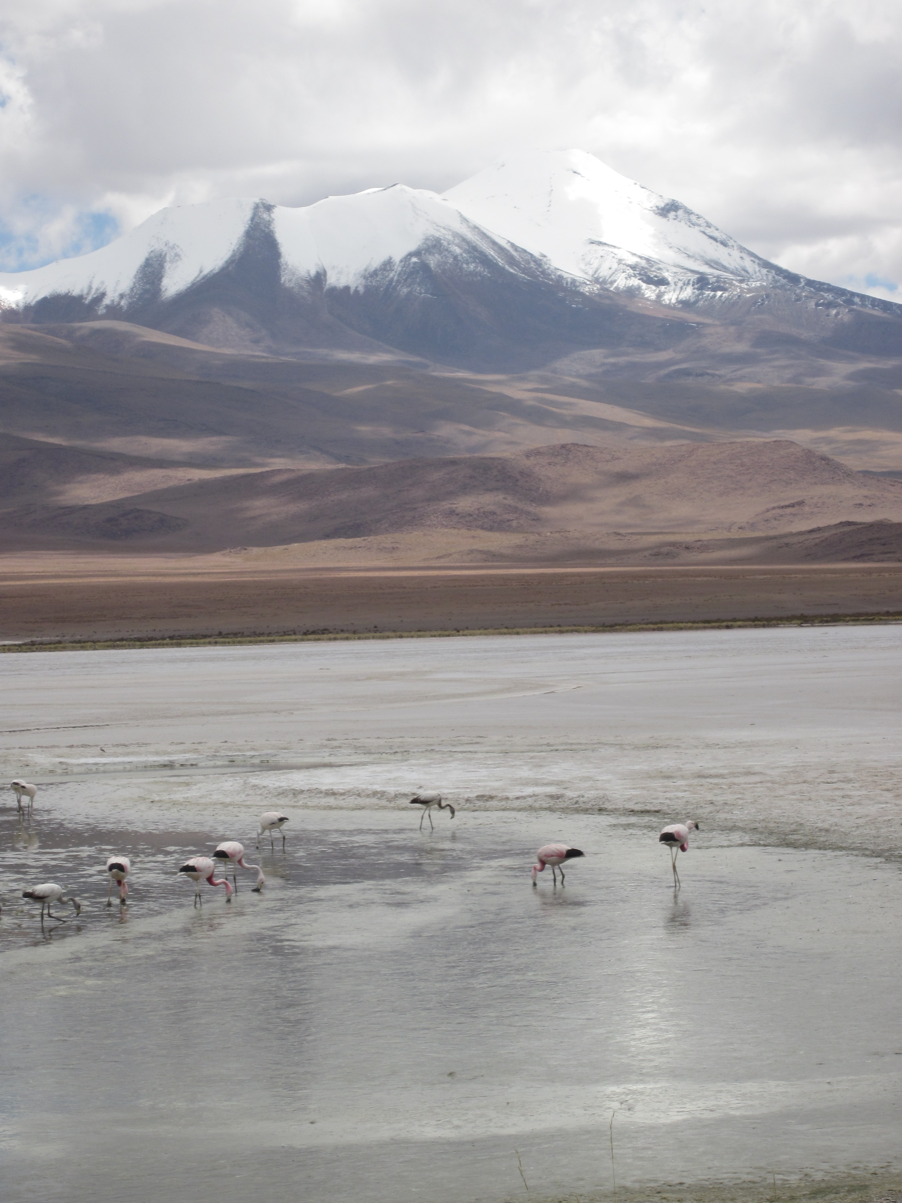 The most beautiful is the Laguna Colorado (Colored Lagoon), which gets its color from carnitine, the same stuff that colors carrots and tomatoes! Even stranger is that it is the breed grounds for over 55,000 flamingos! So in the middle of the high desert, are sulfuric lagoons, filled with pink flamingos, and in the background are the snow-peaked Andes.