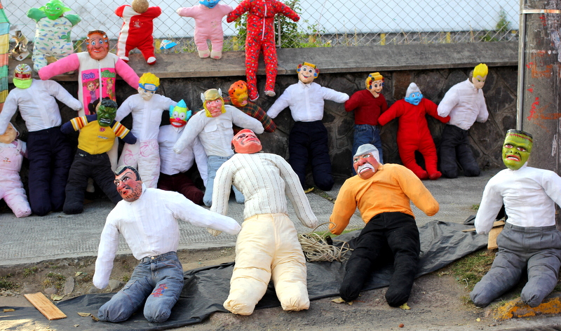 However, all holidays, even in Ecuador, seem to eventually get commercialized. So now in competition with the homemade viejos, you can buy your own. Either a semi-traditional one still made with sawdust and old clothes (just some random person’s old clothes rather than your own). The piles of sawdust viejos for sale stacked 10 men deep at the random corners felt a lot like a creepy post battle scene from the Civil War.